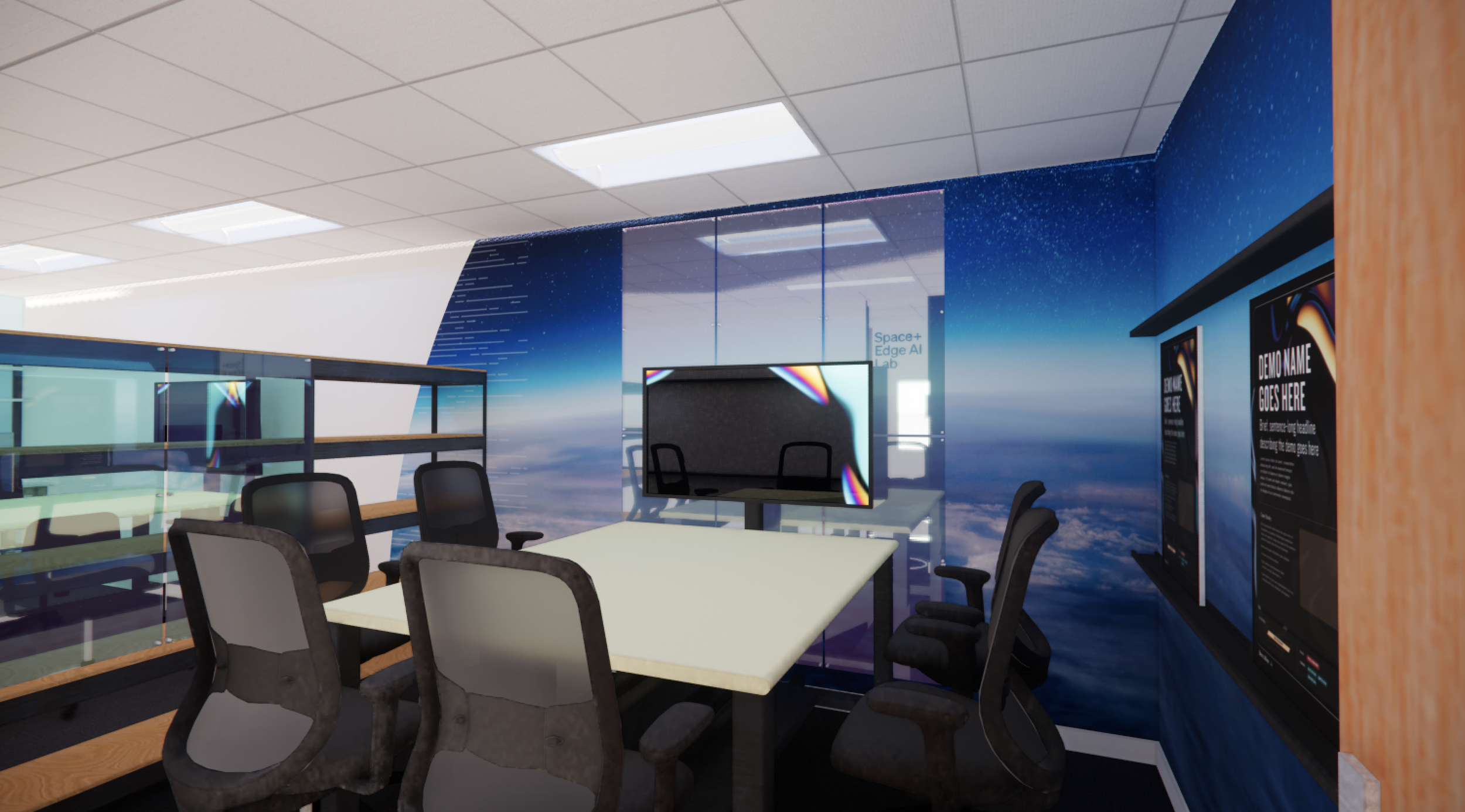 Converted from a deprecated lab, the Space + Edge AI Lab is a dedicated environment where engineers can assemble and code AI hardware/software systems. It also provides a branded briefing area for customer demos.